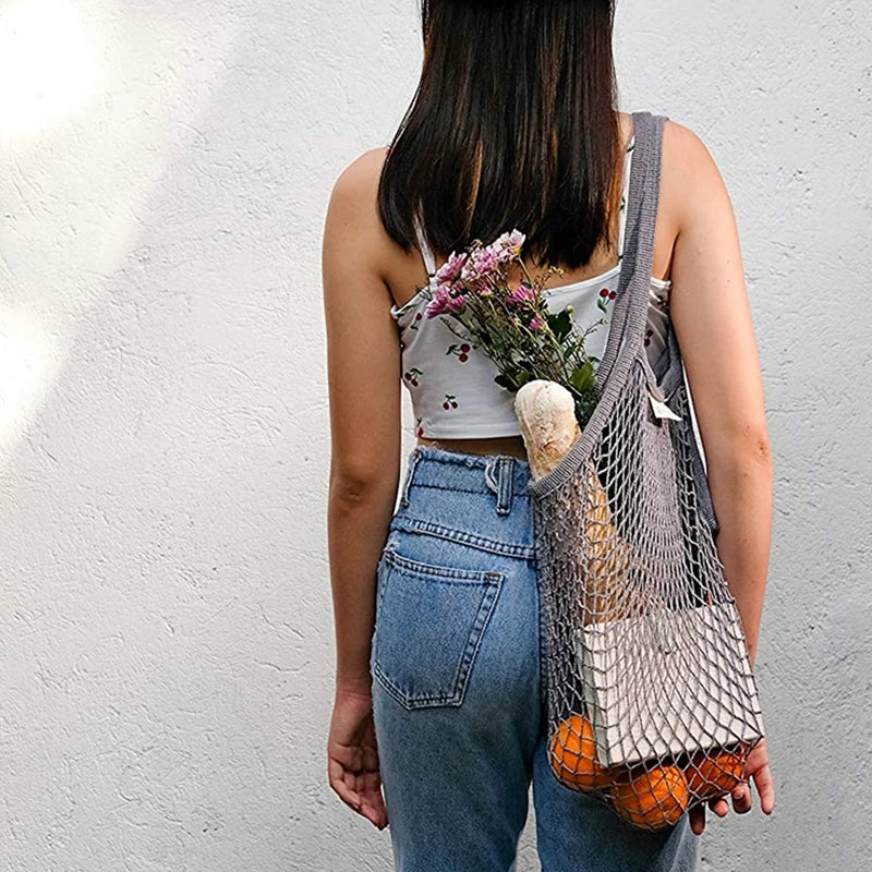 Bolsa de Malla con Asa Larga 100% Algodón Orgánico