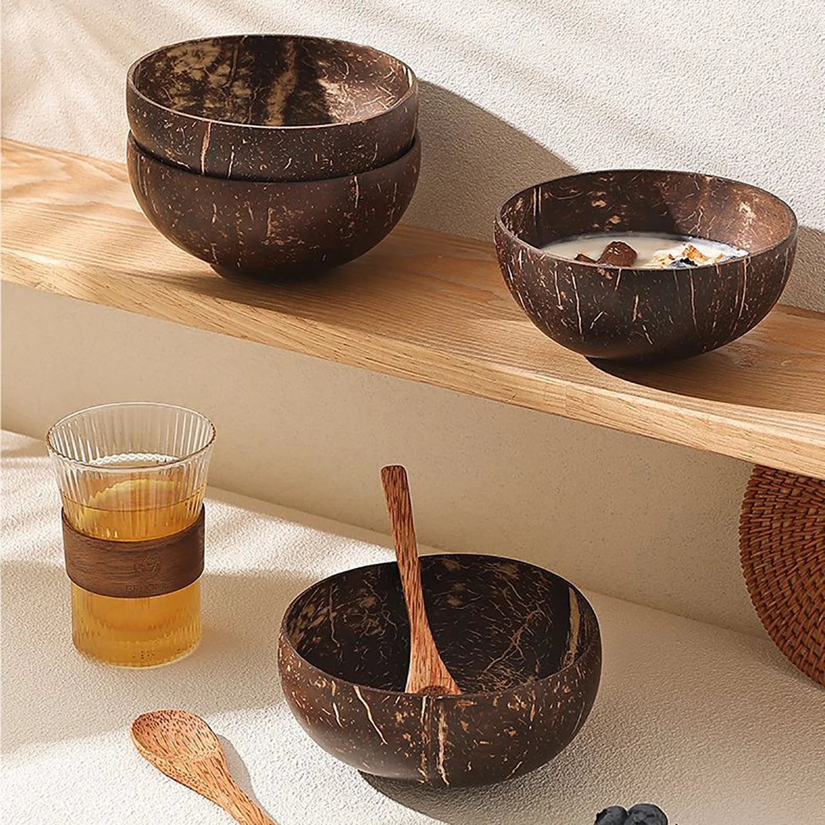 Set de Cuenco de Coco Natural y Cuchara de Madera